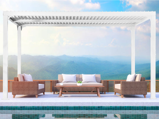 Paragon Outdoor Novara Gray/White Aluminum Pergola 10x12, 12x20 with Louvered Canopy